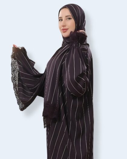 التفاصيل: مغيط ناعم عند الأكمام لملمس مريح وعملي، ودانتيل عند الحجاب لمظهر أنثوي جذا